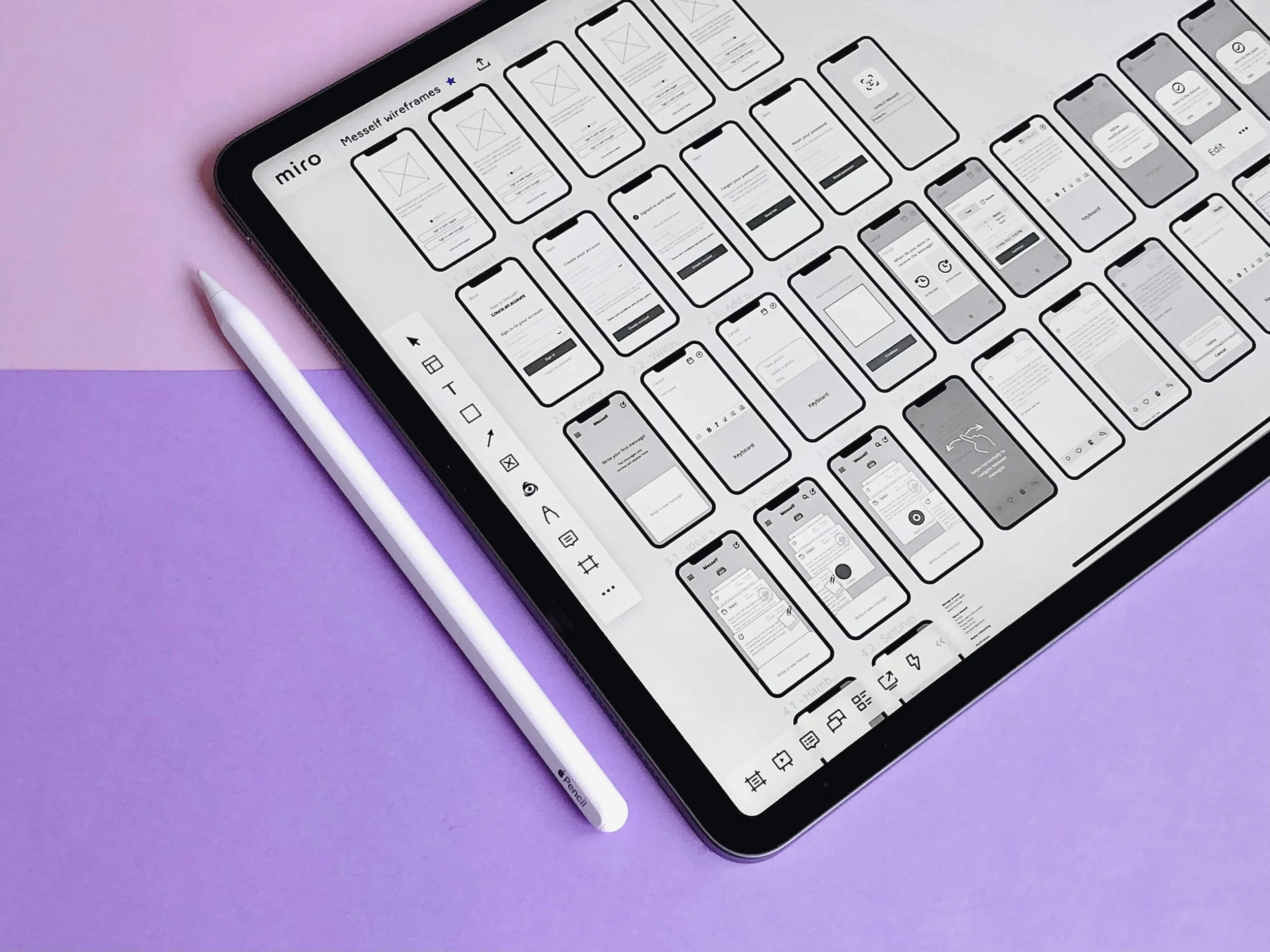 With a sharper idea of how Mesself would look like, I started wireframing all the different sections. This was useful to iterate multiple times and challenge the initial ideas that I had. It helped me shape the user interface and also start thinking about interaction.